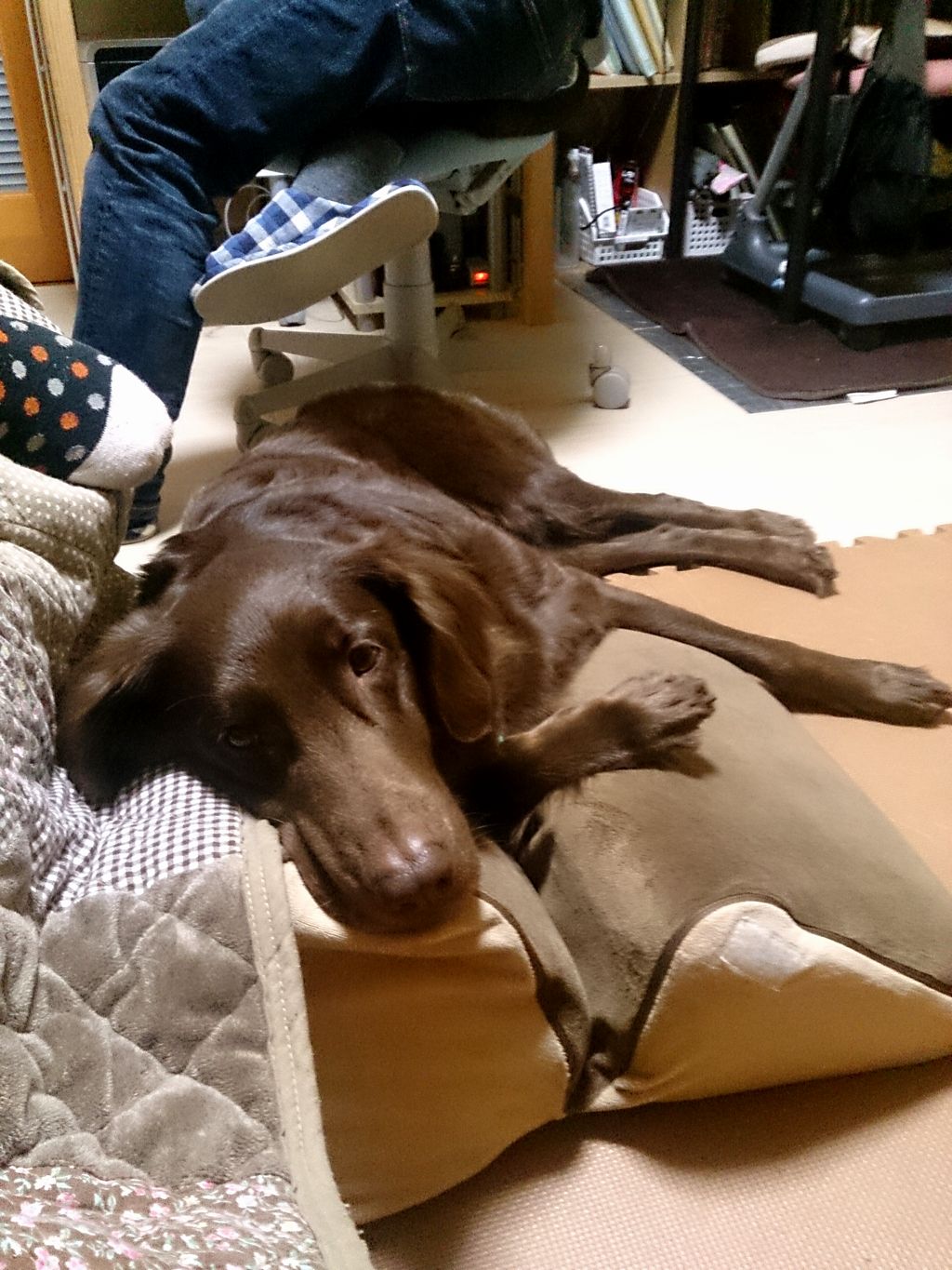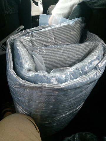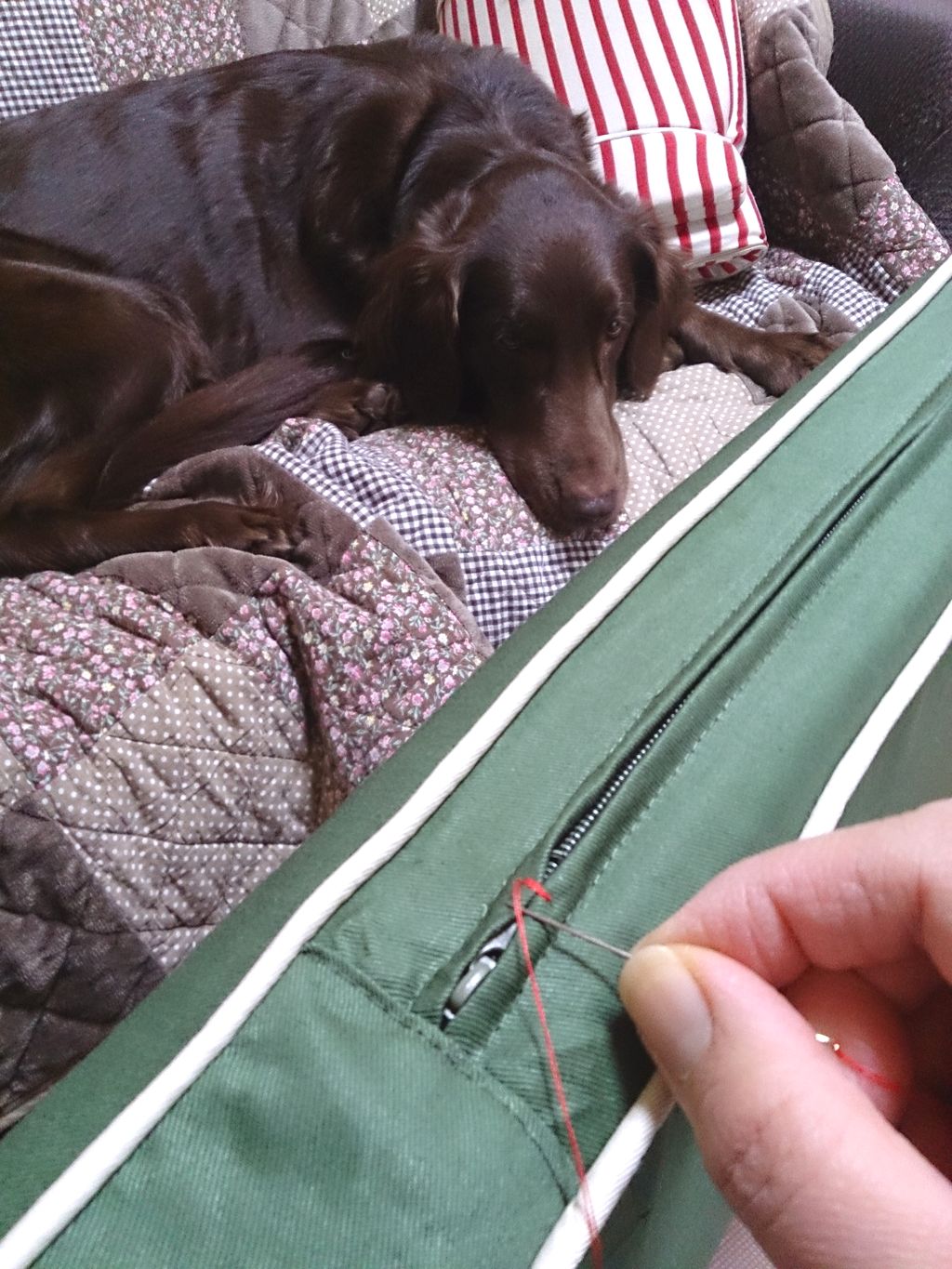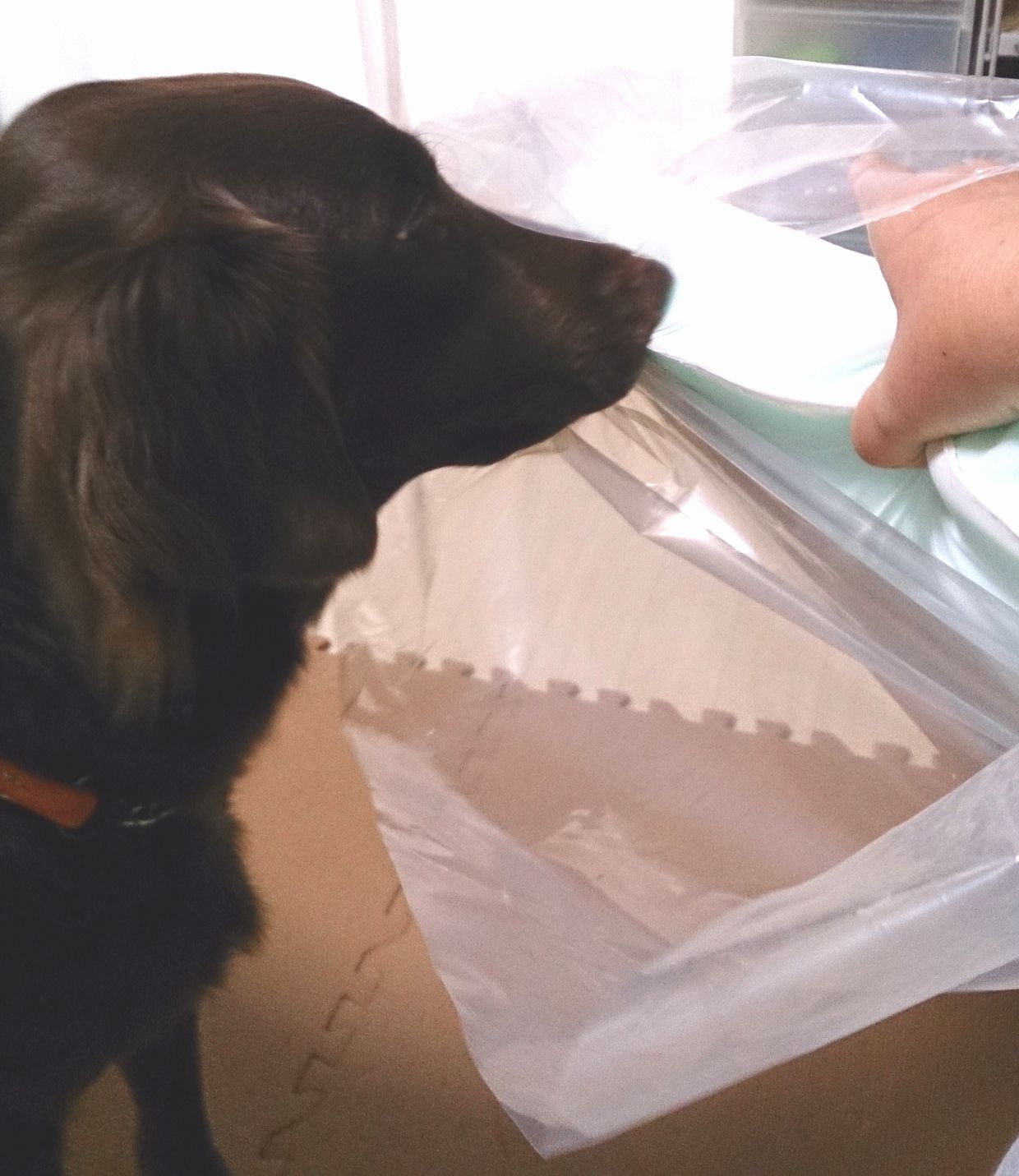 新しいマットはファスナーで遊べないように縫い縫いしなきゃです