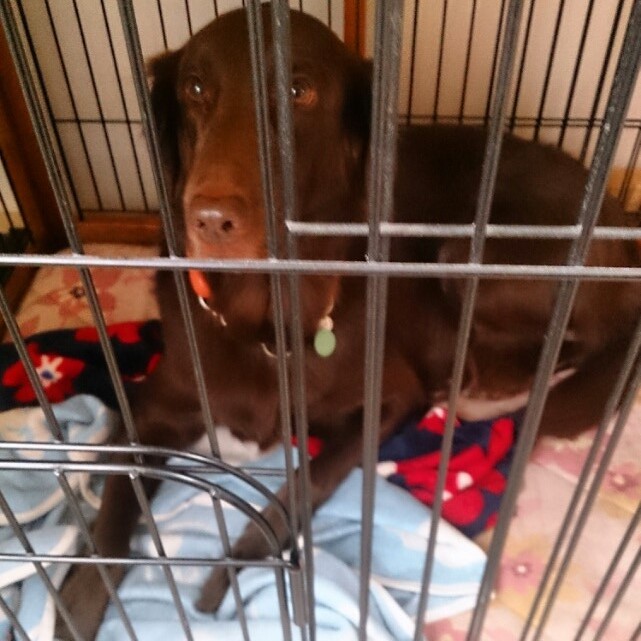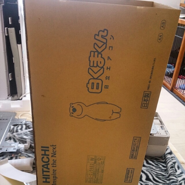 エアコン交換は12月の6日、この日は工事のお兄さんが出入りしてカヤさん作業ちぅはケージの中。