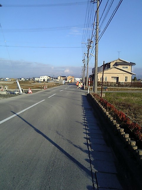 新しい団地の工事のおじさんが、ずいぶん離れたとこまで誘導しに迎えにきてくれてます。