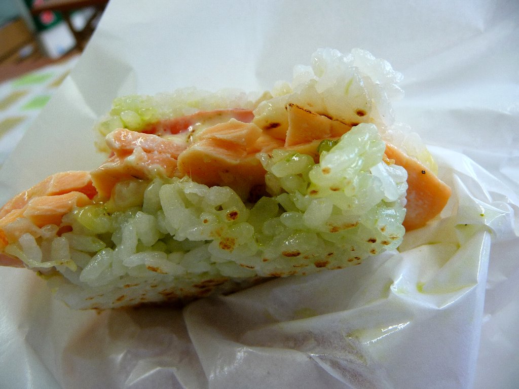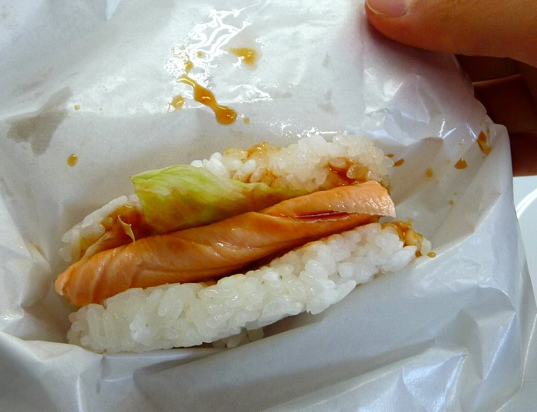 只今50円引き期間だそうでバジルチーズ450円が400円、照り焼きが400円のが350円でいただけました、いつまで割引期間なのかしら?あんまりこのます寿しバーガーの情報出回ってないのよね。