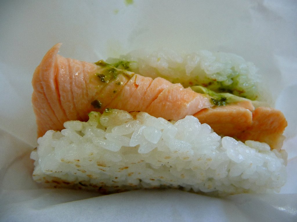味は・・・ます寿しバーガーと言うよりもますバーガー?ます寿しのあの酢の感じは挟んであるマスからはしなかったです、火を通したから?