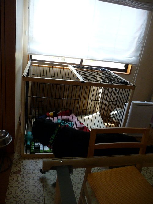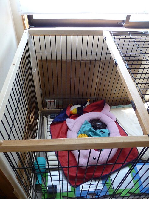 残り1時間余りかなって事でやっぱ中のほうが涼しいし最近凜ちゃんおりこうさんだしとサークルへ。