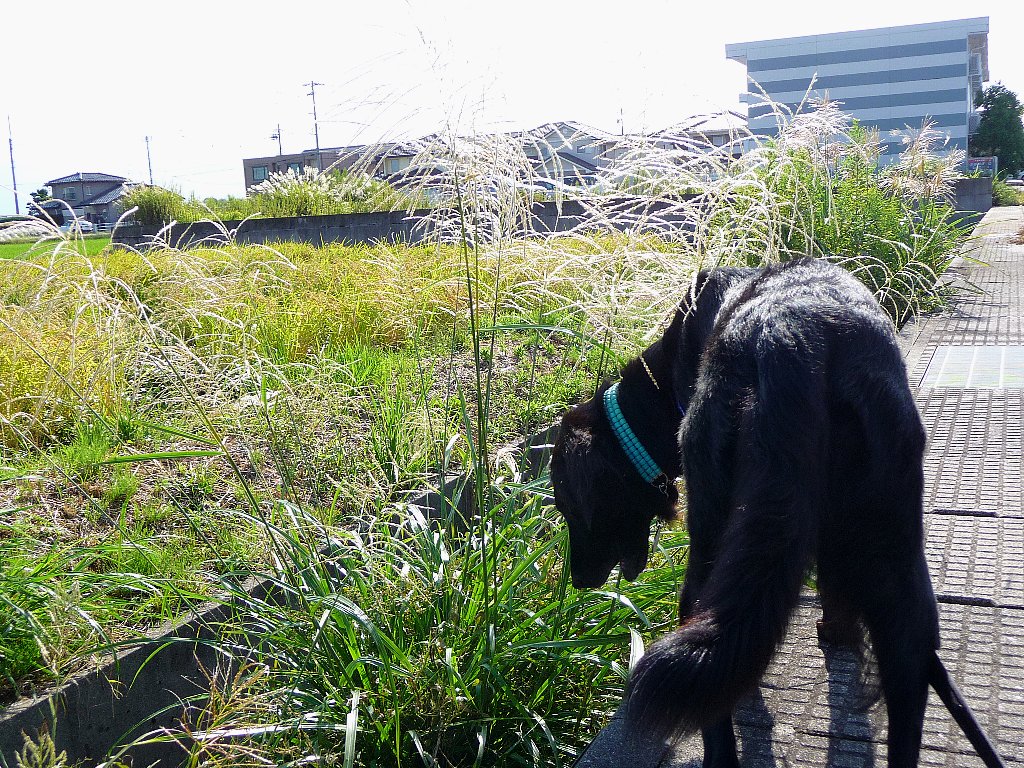 ばかたんチンがススキの葉っぱ食べだした(--)でも固かったらしくぺっぺと・・・あほたんチン!