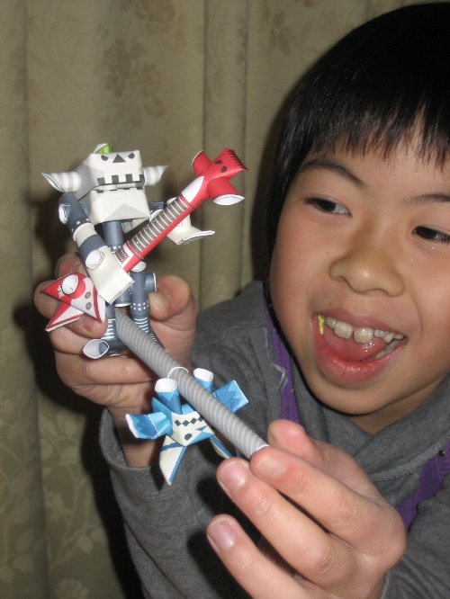 おうちに帰って、姉ちゃんはさっき仕入れてきた細いストロー状のものから切ってさしただけで作れる人形を作成。