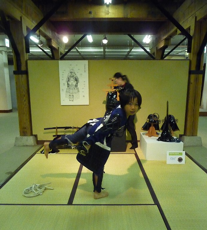 兜おかしいですよね?この鎧だと向かって左後ろにある足軽のが正解、そうなんです、偉い人の着る鎧は海を渡っているそうなんです。