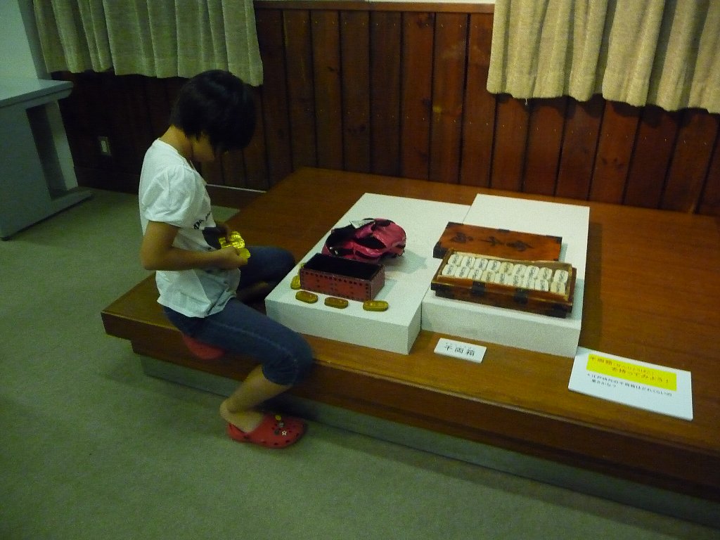 横に有る千両箱、まぁ重いんだけど(10K位?)持ち上げて肩に担いでねずみ小僧の気分を味わってたchababa、それを見て係りの人がすごい!担げるなんて?!・・・いやいや誰でも出来ますって(--;)