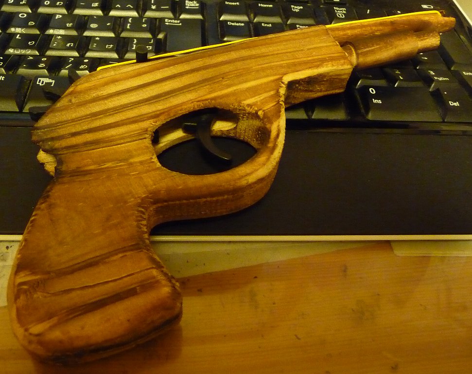ゴムをかけて飛ばすやつ・・・。