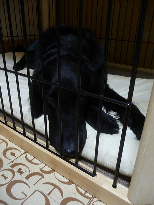 サークルに入って1時間余り静にお留守番?!