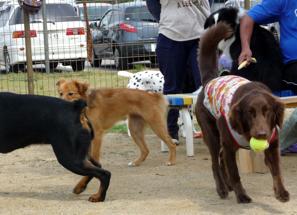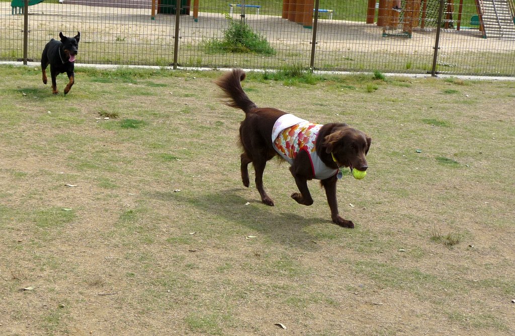 いつもよく遊ぶダルメシアンのラブちゃんがいてお迎えもしてくれたのに今日はかぁたん何故か絡まず。