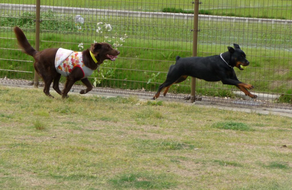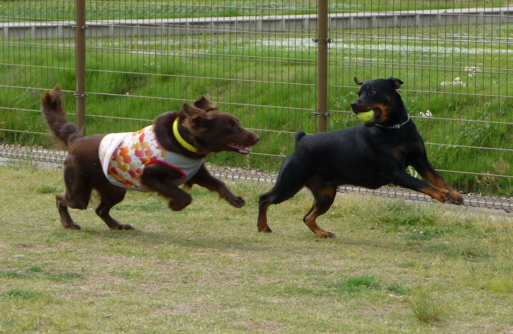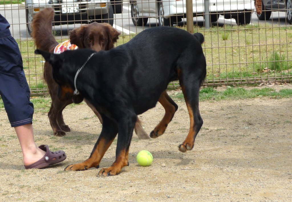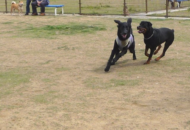 そして今日はロットワイラーの女の子、ロコちゃんだったかなぁ~?なんだか凜カヤをそして凜パパやchababaを気にいったようでうちの子みたいにくっついてました(^。^;)