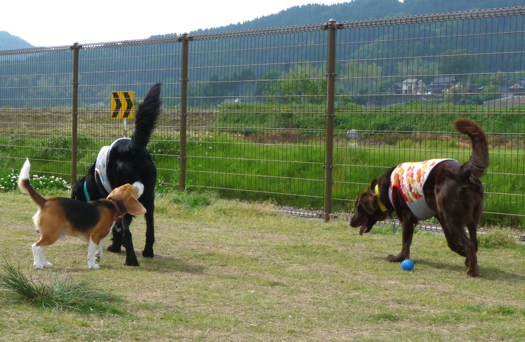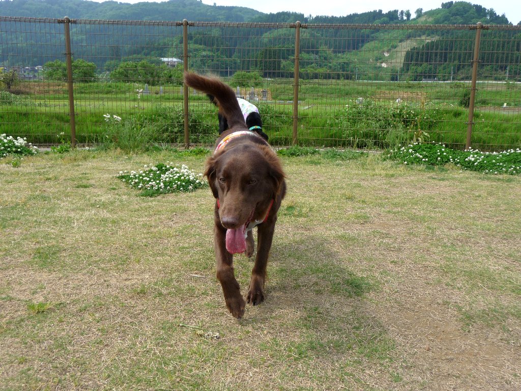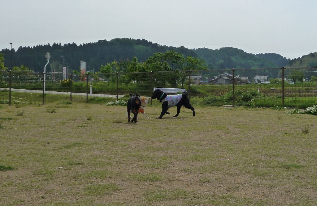 凜がいる間テンちゃんリードはずしてもらえそうにないし、2ワンともまったりして凜はナメナメ星人になってカヤべしょべしょになってきたし、ランの外で四つ葉摘みしてる姉ちゃんを呼んで帰路へと付きました。