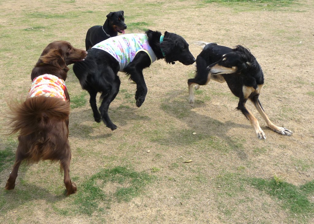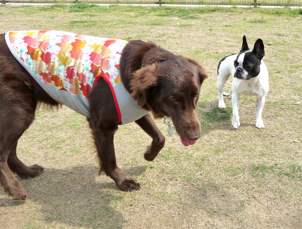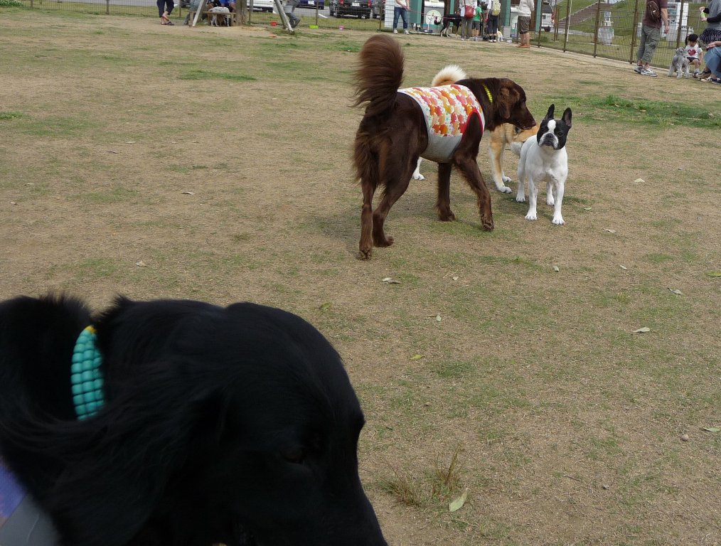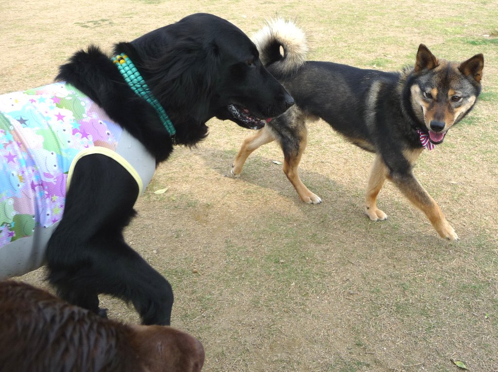 あんまりにも凜に乗ろうとするので飼い主さんテンちゃん御用にしちゃってオンリード、なんだかかわいそうだったわね、ごめんねテンちゃん。