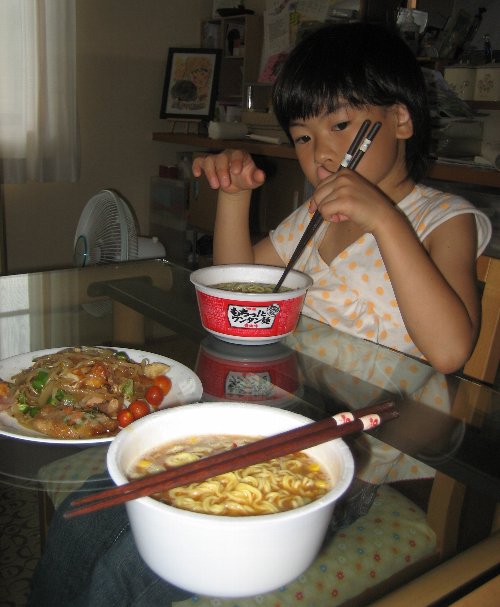 んで暑い中帰ってきた姉ちゃんにソーメンでもと思ってたけど、冷え冷えのお車で帰ってきた姉ちゃん、普段はほとんど食べさせないんだけど本日のお昼(^^;)