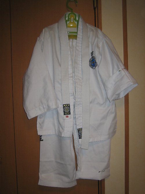 んで、今日のテコンドー、正式入門で本日道衣を渡されました。