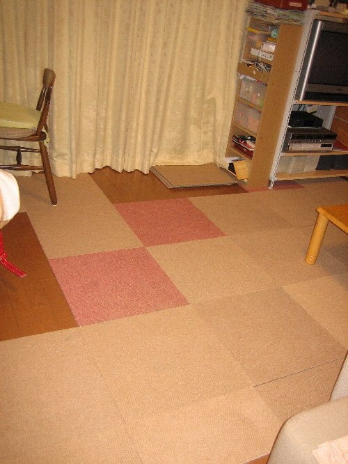 慌てて見にいったchababaなんだけど色が同じのが全然無いの・・・で、凛パパに確認したら、今床に敷くのコルクにするの考えてるんだからそんな無駄な買い物せんと一回り小さくすればいいんじゃないの?って(゜〇 ゜)あ~、それもそうねぇ~。