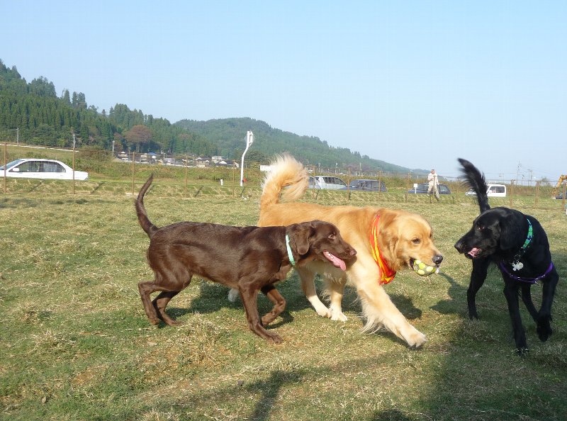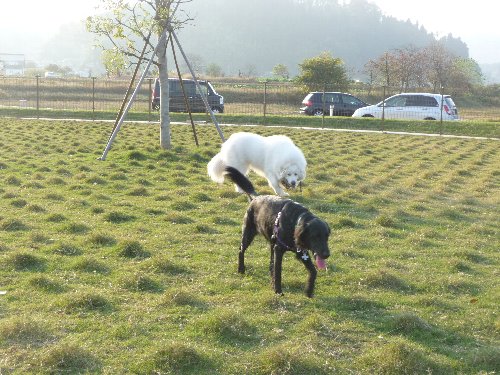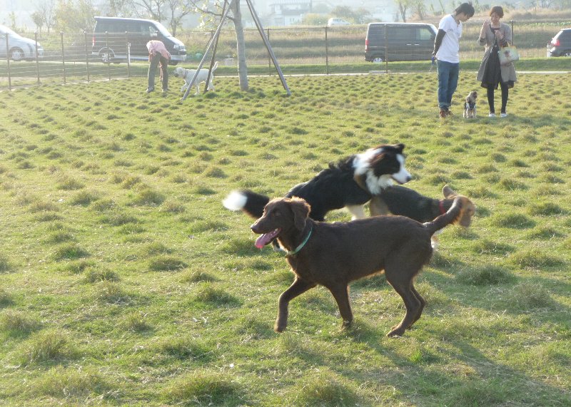 で、広いもんだから、おっきい子が結構いたんだけど全然沢山いるって感じじゃなくて、でもよくよく見るとかなりの頭数、立山だって海岸通りだって福光だって、こんなに大型犬が一緒に入っているランをあたしは見たことが無いかも。
