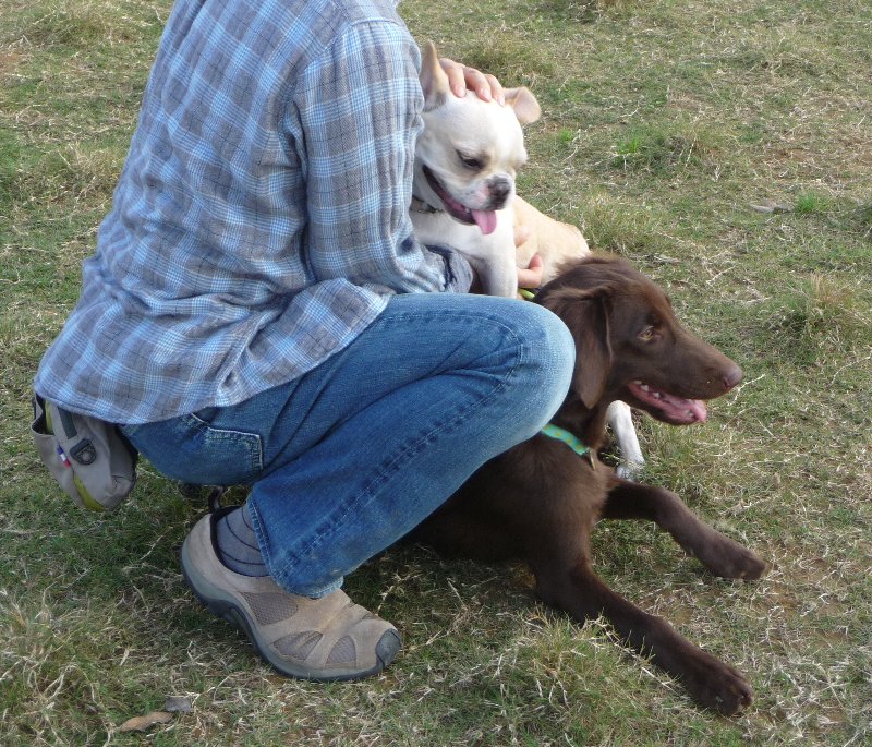 モモちゃん凜の勢いに怖くって尻尾巻いちゃって、パパさんに帰りたいアピール。