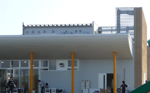 車に戻るとき道の駅のレストランの裏っかわにテーブルがいくつか出てて、すぐ横には立派な柱!