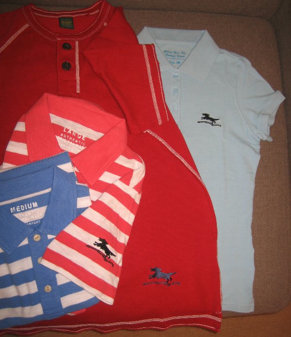 青いポロは凛パパ、実はこのポロ4色あるんだけど薄いグレーが凛パパかなぁと思ったんだけどマークのMelong君が赤なのよ。