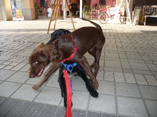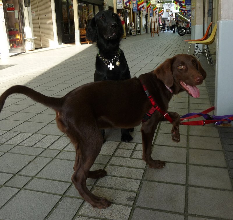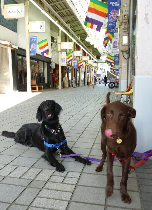で、いつものお店の前で二人を座らせてお写真をばと思うんだけど、カヤったら一応座るんだけどすぐに動いちゃう(--)