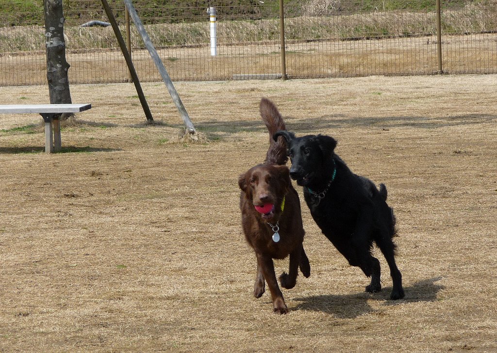 大型犬エリアはほぼ貸しきり、小型犬エリアもほとんどいらっしゃらなくってシーズのオーナーさん遊んでくださいと大型犬エリアへ。