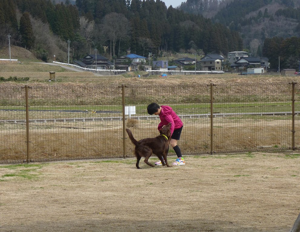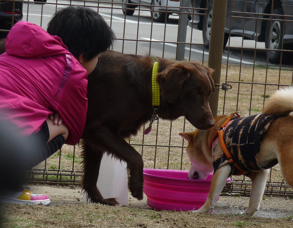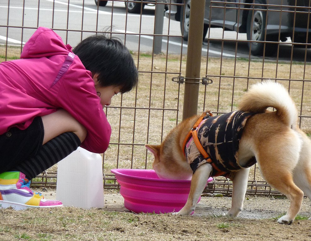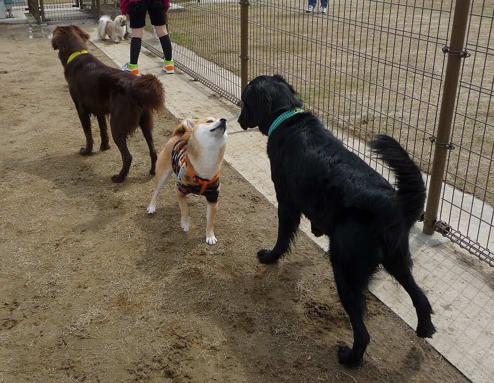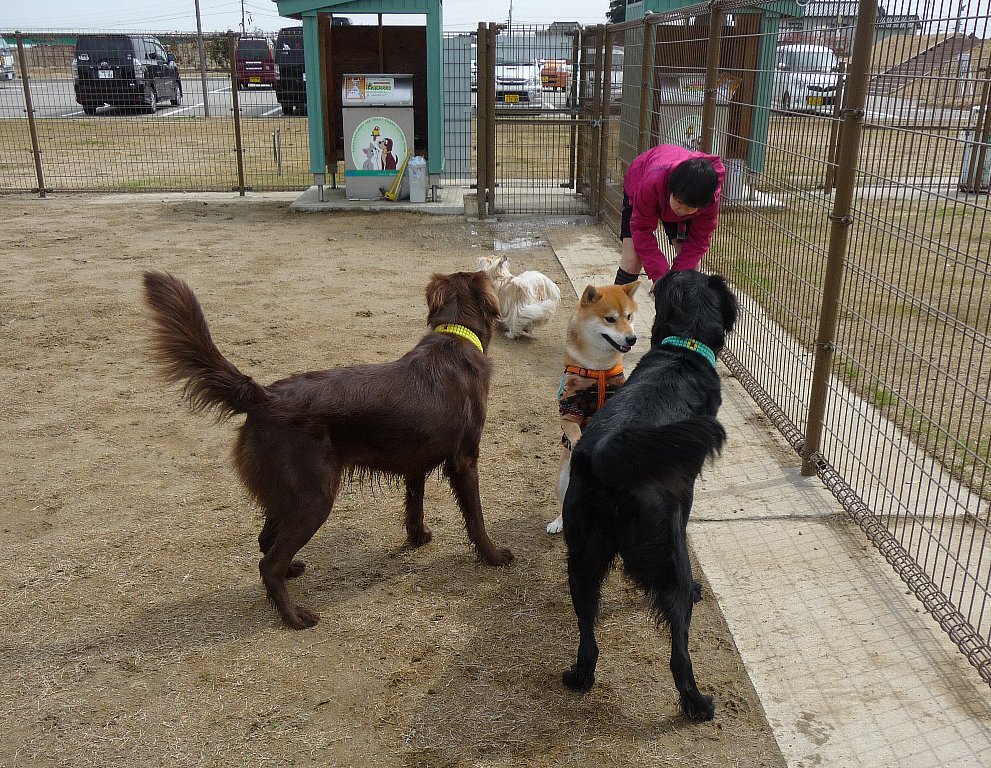 午後の話しなんだけど春休みなもんで犬連れで無い親子連れも多くってただ触りたくって入ってくる子供らが何人も、動物園でもふれあい広場でもないんだけど。