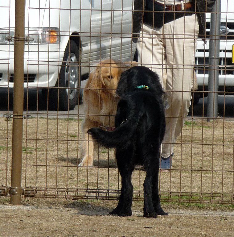 凜は柵向こうのゴルちゃんが気になって秋田犬のむこうっかわです(^^;)