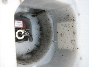おじちゃん、こんだけつまっとったら空気が循環しないからなんとか空気を通そうとモーターに負担もかかるし、かといって循環してないから換気もちゃんとナンないしニオイも・・・しょっちゅうしなくってもいいけど、次の10年目くらいに掃除するときはモーターも寿命きて交換かもしれんわって。