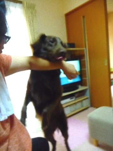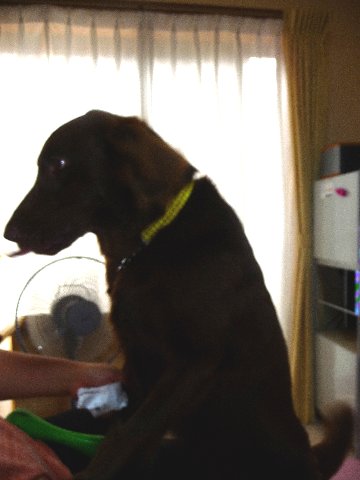 chababaの膝にのったトイ、これを投げるか引っ張りっこかしたくって置いてずっと待ってみてたのだけどこの時ってばご飯の後、chababa断じてご飯の後には遊びません!ってかハウス!!って言ってるのに(-"-;)