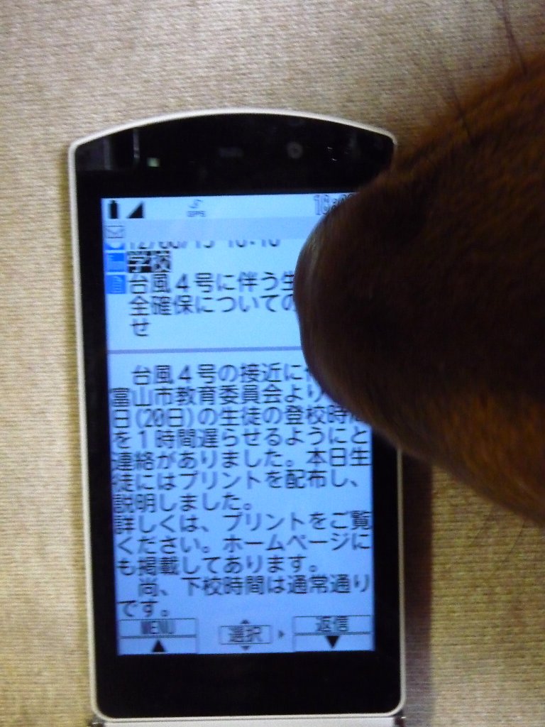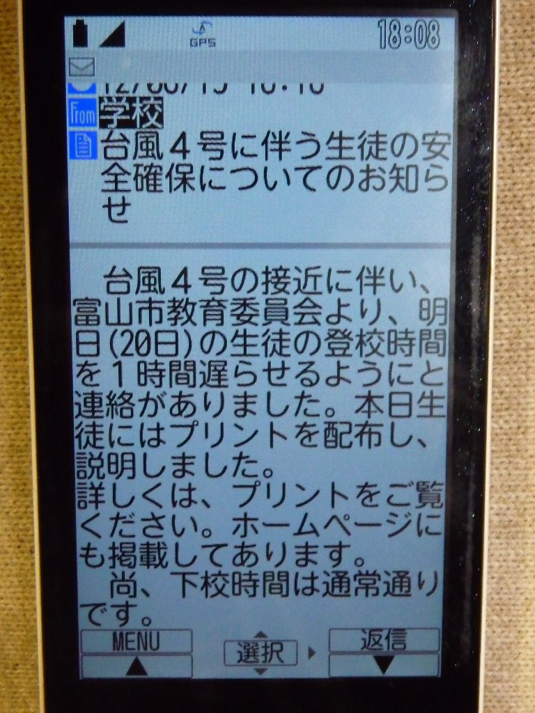 あ~、今日の昼間も小雨程度にしか雨は降ってなくって夕方なんて雨降ってなかったし風だって全然だったんだけど夕方学校からこんなめるめるが、