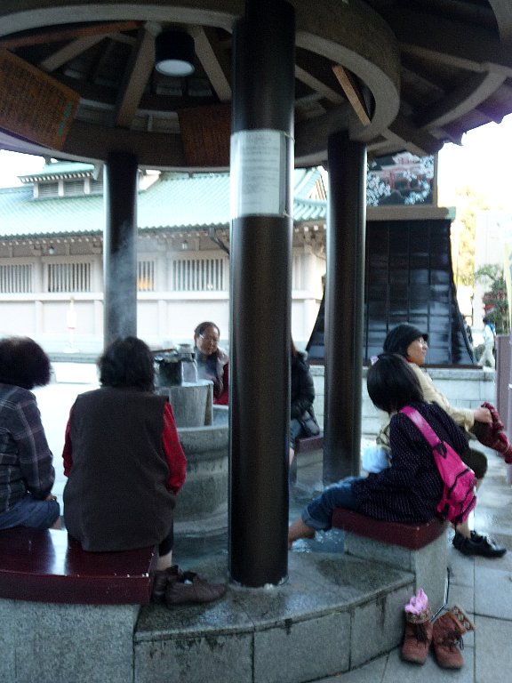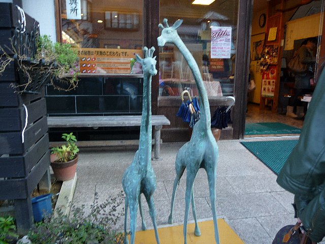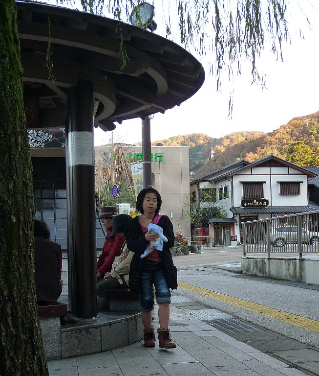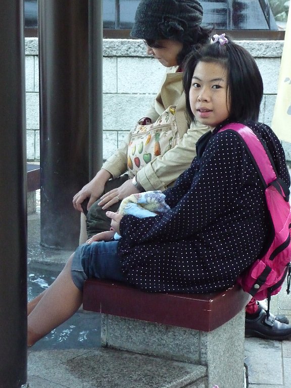 凜カヤは足湯横にあるからくり人形のお囃子の音にビビリ気味( ̄m ̄)