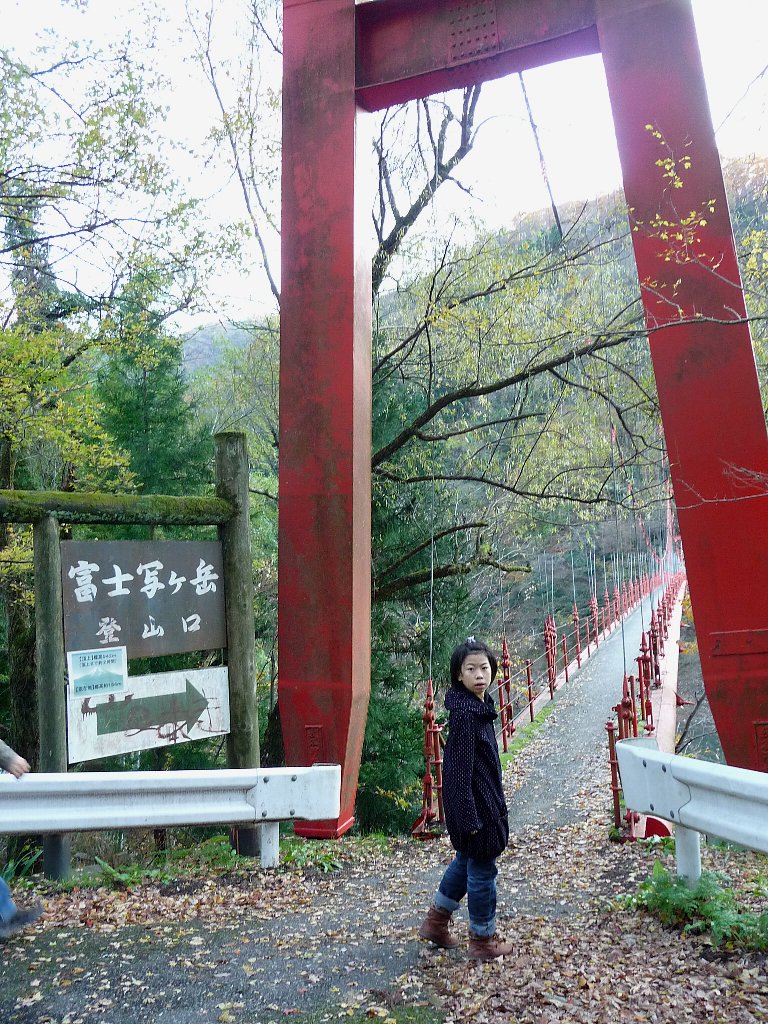 この橋をわたって富士ヶ岳山頂には歩いて2時間ほどらしいです。