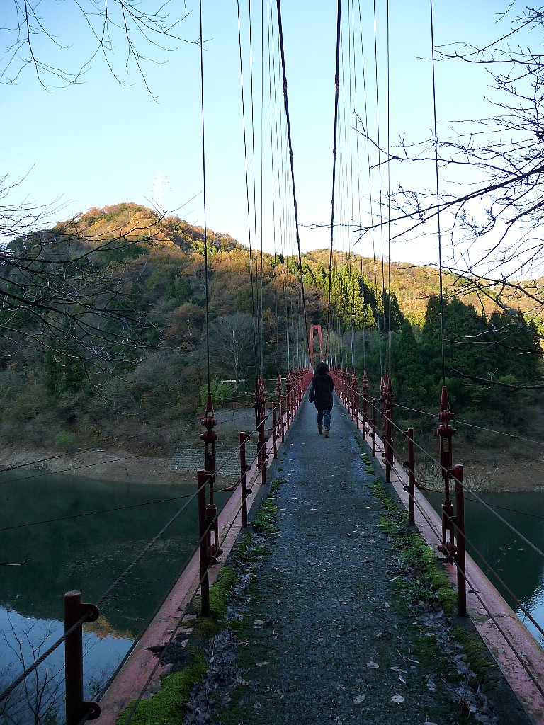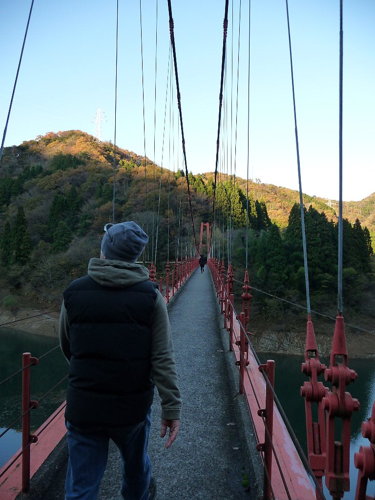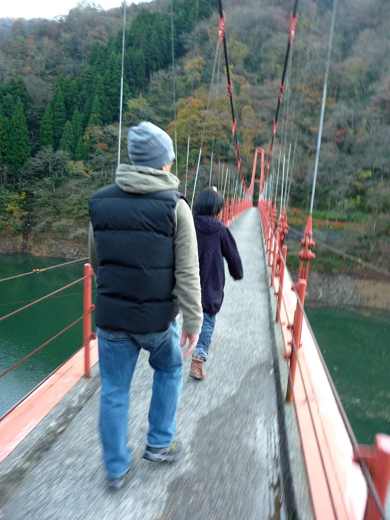 chababa的には登ってみたい気もするけど後の二人が同意するわけもなく、まぁ時間が時間で無理な話ではあるのだけど(時間があっても同意しないだろうなぁ~)とにかくこのダム湖にかかったながぁ~いつり橋を渡ってみたかったのです。