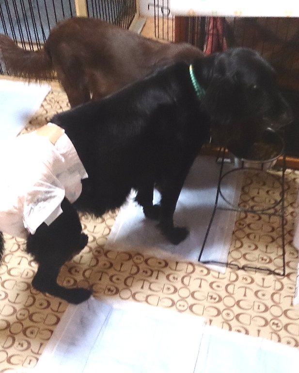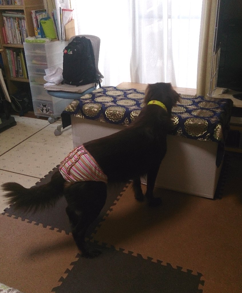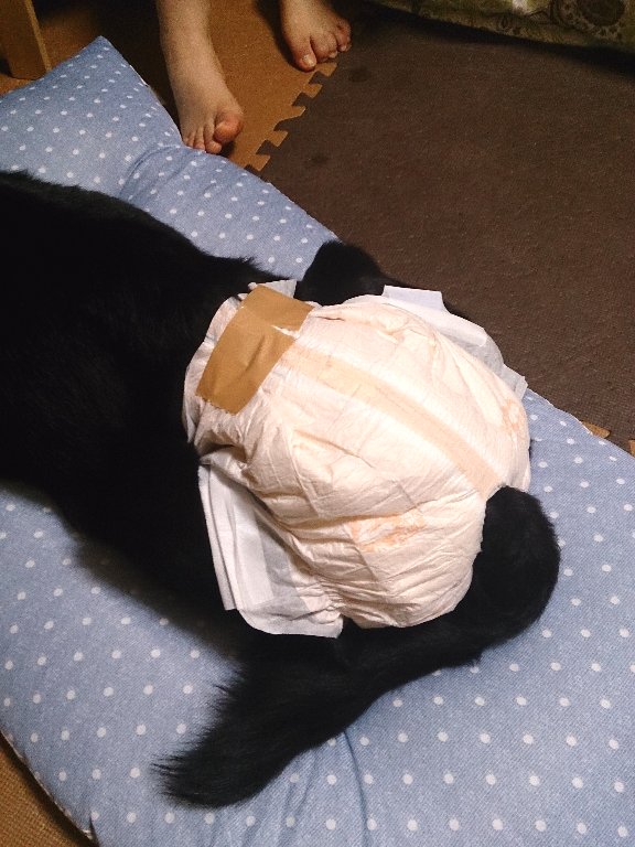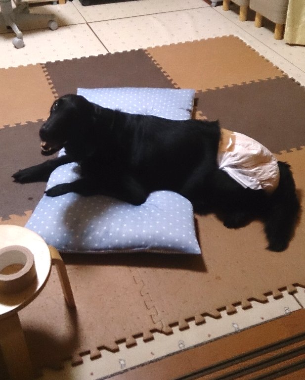 でも近くのお店には大型犬用のオシメなどおいては無く、では人間の?でも赤ちゃんのだと股上が短すぎるし大人用だと腰がゆるすぎる・・・お店の人に相談して結局大人用のSサイズを選んで戻りました。