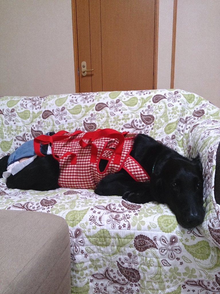 お友達から譲り受けた介護用ハーネス、ベージュのと2枚入ってたけどやっぱり凜はこっちが似合う?