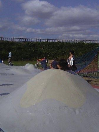 その後、chababaのリクエストとしては今日明日やってる福岡町のつくりもん祭りを姉ちゃんに見せてやりたいって事だったんだけど、凛パパお祭りってあんまり行きたがらない人で(chababaも人ごみやだけど初日の昼間ならガラガラの筈なんだけどなぁ)、結局よってかぁ~れ城端に寄って、桜が池の遊具で遊ぶ事になりました。