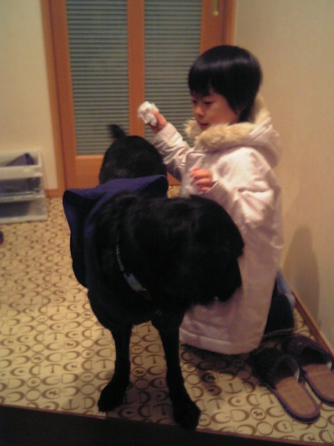 家に着いたら水をやって、かぁしゃんがまだでしぃと踏ん張って家に入るのを嫌がる凛輔を引っ張りいれて・・・今度はハーネスをはずして、足拭き、体拭き。