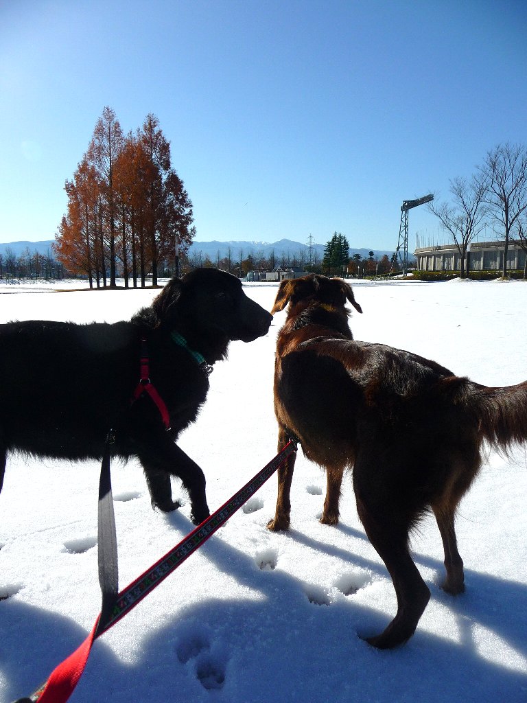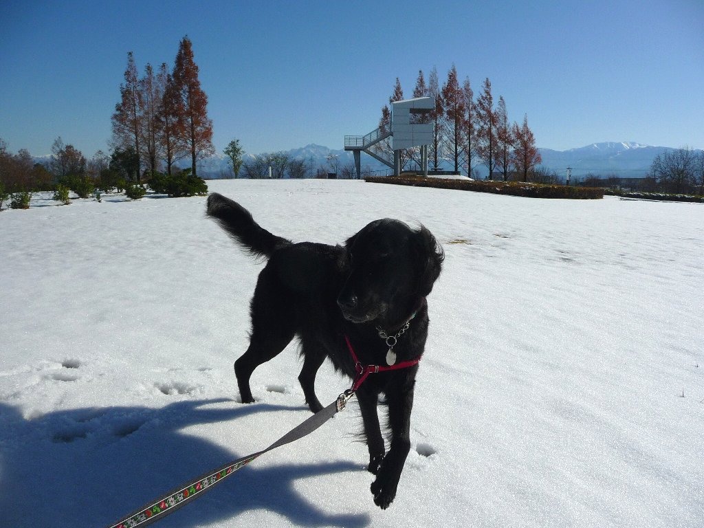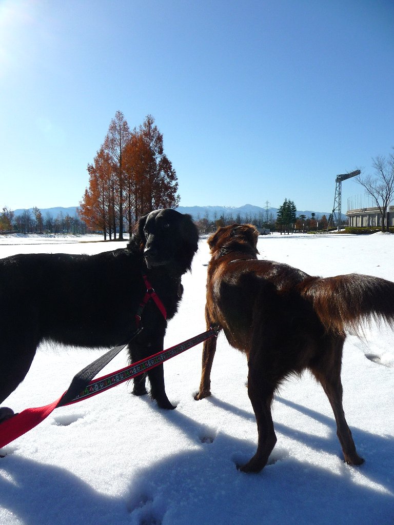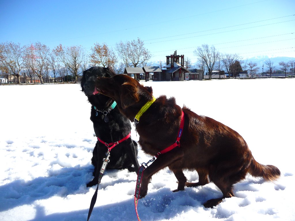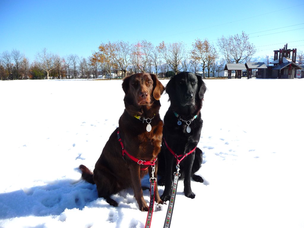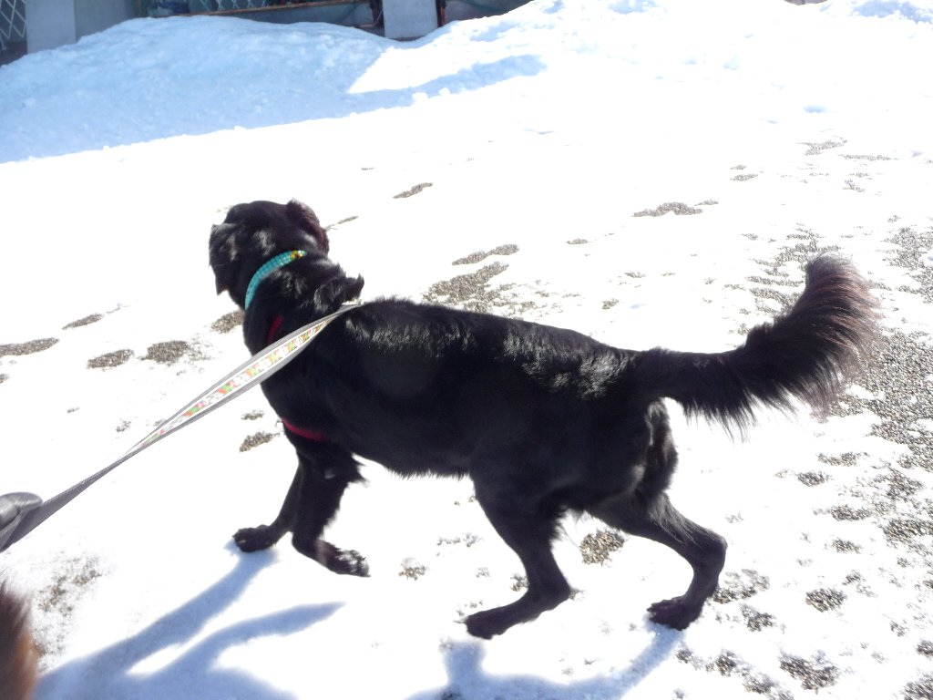 お日さんが雪に反射してまぶしいねぇ~、オメメにあんましよくないよなぁ~(-へ-;)