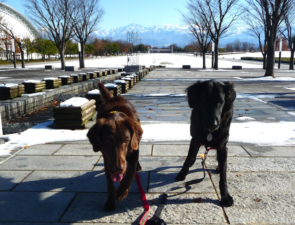 そんな心配もしつつもそれでも元気いっぱいにうれしそうにずんずん歩く2ワン、したら向こうに何か見えてきた?