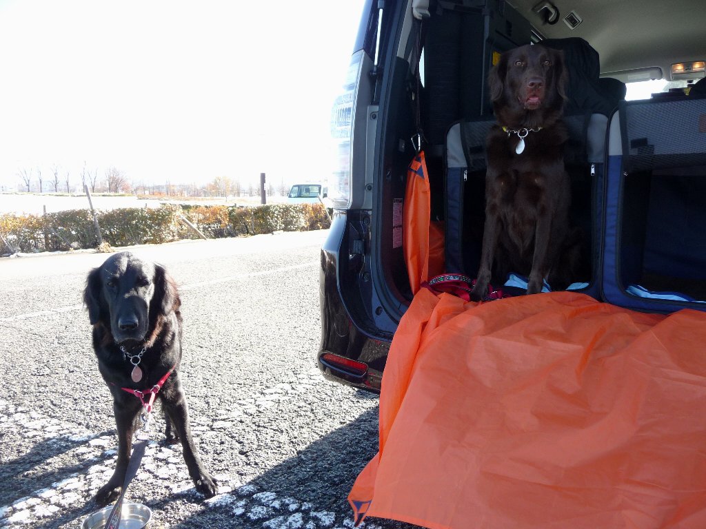 凜にもお乗りいただいて、さて帰りちょっと買い物して帰んなきゃで朝ごはん遅くなるからおやつあげるねと言ったら・・・凜ちゃん垂れてる垂れてる!(>▽<)