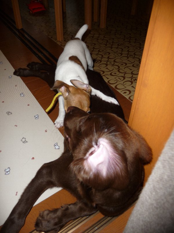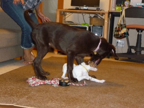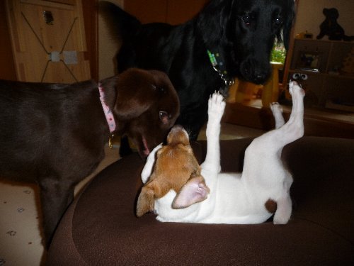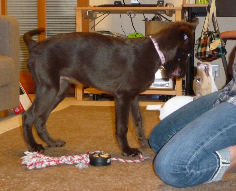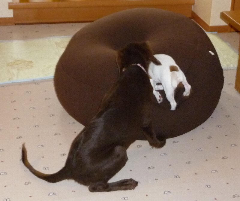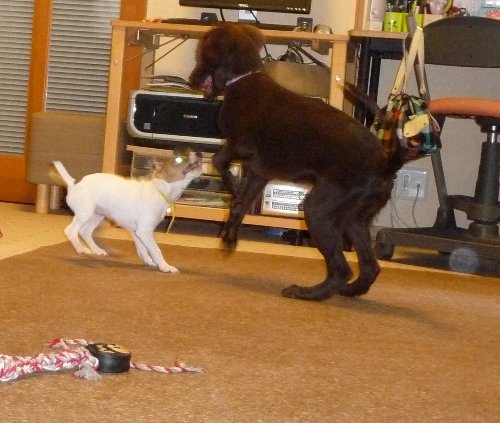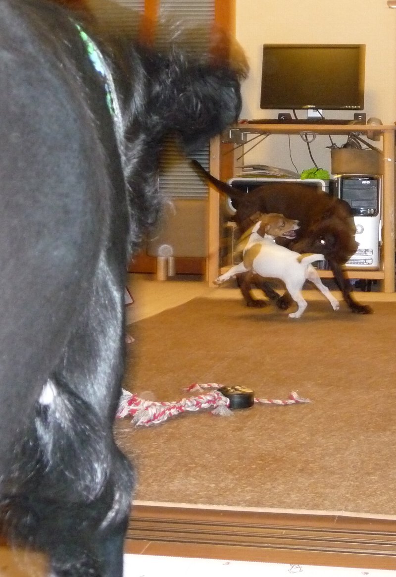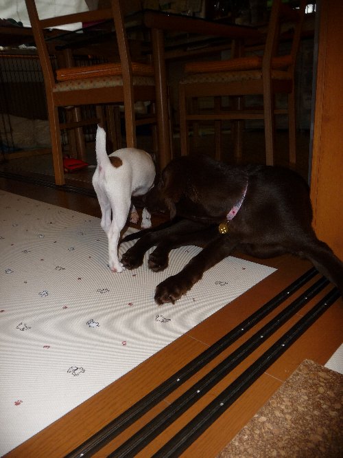 カヤのことは大きさは違えど子犬どおしだし、なんとなく予想では・・・と思ってほっておく。