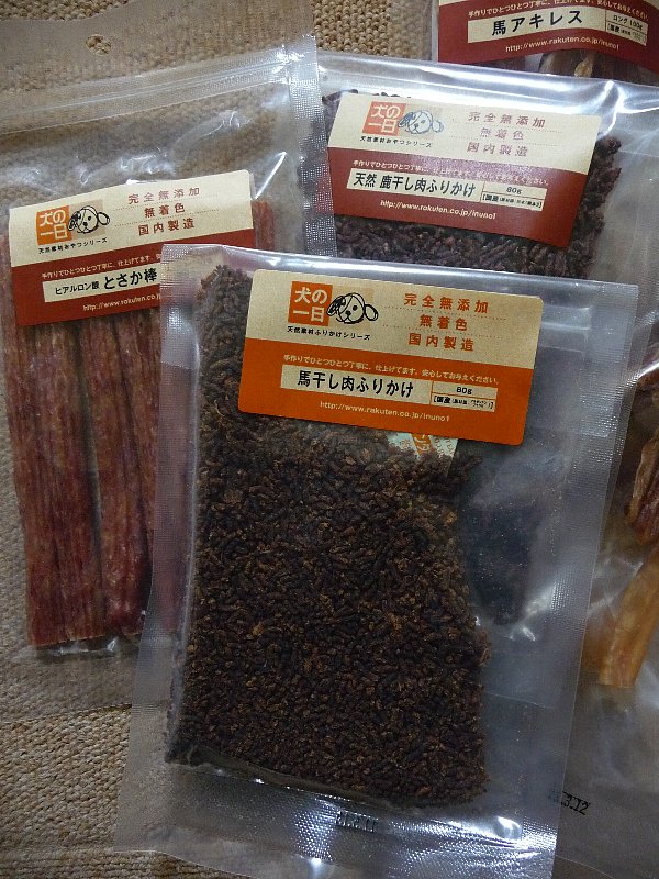 一番左っかわがササミとトサカで出来たとさか棒、これはめちゃくちゃ大好きです、お留守番の時に細かく割ってガジーにつめます。