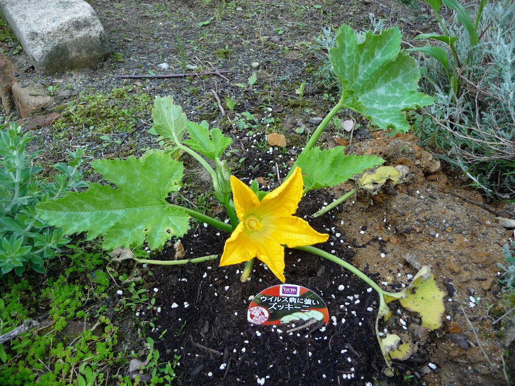 そんな日蝕と関係・・・ないんでしょうけどズッキーニの花が咲きました。