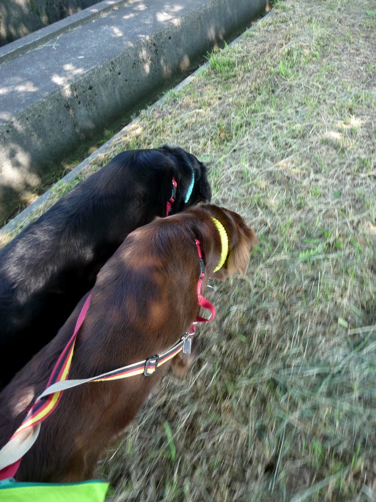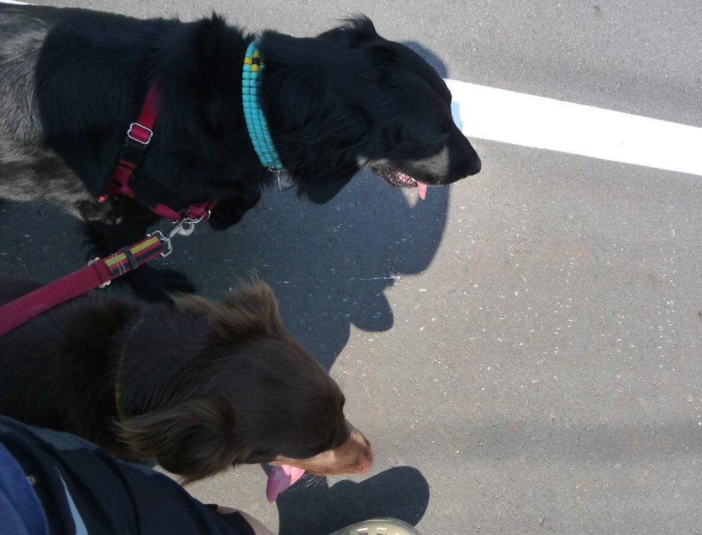 野っぱらでは引っ張るやらお手紙読むのに真剣で動かなくなるわのお二人さんだけど、普通の道ではホレいい子ちゃん♪