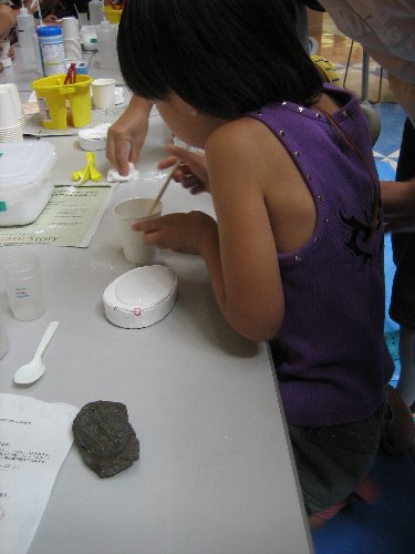 おまちかねのレプリカ作り、アンモナイトと三葉虫、姉ちゃんは三葉虫を・・・不気味じゃない?