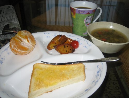 お休み明けのあわただしい朝、二人を送り出してようやくchababaの朝ごはん。