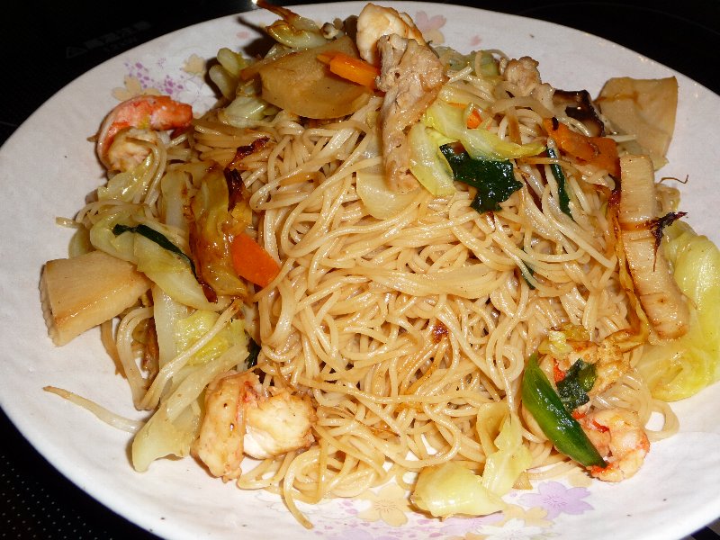 そして夕ごはん、今日はぱぱっとビーフンです。