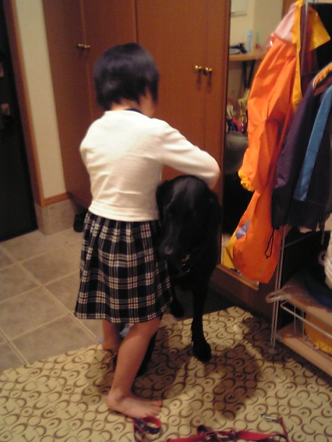 夜、凛輔の散歩にでるとき、今日は姉ちゃんが全部やってくれるそうです。