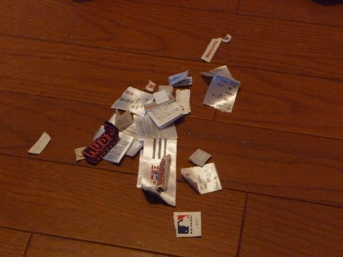 カヤち、クッション系ことごとく穴を開けて綿引っ張り出すなか唯一大丈夫だったうすっぺらいクッション、ついに・・・いったいどこに綿入ってたん?ってとこから綿を引っ張り出しておいでました。