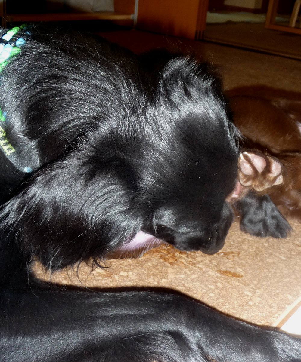 凜が来て1年目までは育児日記をつけていたので、フラットの子犬を飼おうと思われた方の何かのお役に立てば・・・・・キットうちの子はまだマシと安心されるはず(^皿^;)